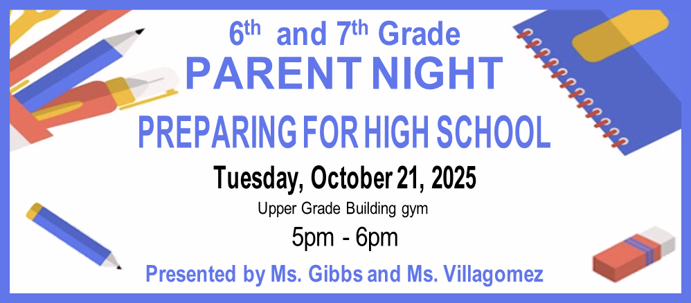 All parents of 6th and 7th grade students are invited to attend an important Parent Night focused on two critical topics: High School Admissions and Middle School Expectations.